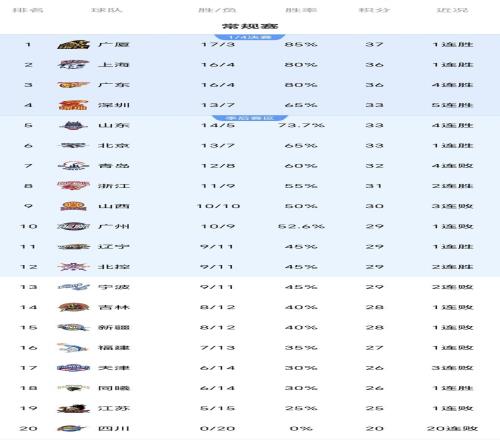 CBA一场5场惨案:前总冠军输52分!最新排名:榜首易主,广东第3